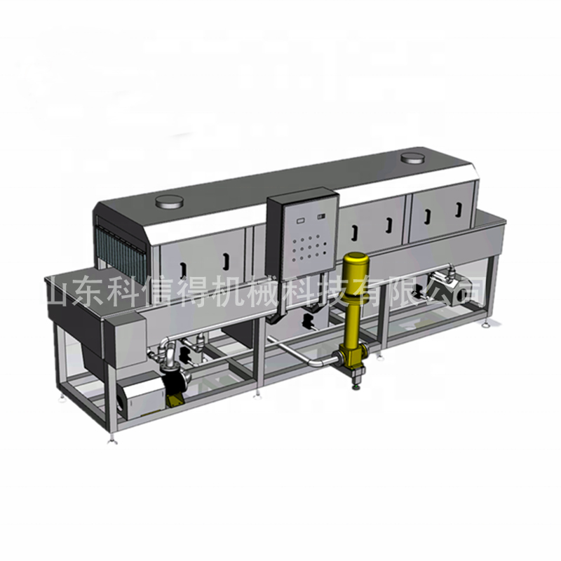 山东科信得洗筐机,周转筐清洗机是针对各种周转筐设计的清洗,除油,消毒和综合清洗设备,该设备操作简便,性能平稳。它是食品加工企业必备的完美清洁设备。我公司生产的洗筐机将篮筐从不锈钢链条中清洗到洗衣机中,然后经过碱水→高压热等多个过程。水→常温自来水→消毒水→等,以清洗篮筐并同时完成消毒和风干;清洁专用篮时,可在热碱水清洁段后加刷子以擦洗篮的底部和左右两侧,以提高清洁效用。采用连续清洗,以提高清洗效率。本公司生产的篮式洗衣机的主体由SUS304不锈钢板制成,保健清洁,喷嘴采用食品级耐高温塑料喷嘴或不锈钢制成喷嘴。清洁出发点可调。上,下,左,右用到不同的型号以避免死角并确保清洁。电机速度可通过机械无级或变频调节。适用于清洁度不同的篮子。两侧的护栏导轨均可左右调节。适用于清洗不同尺码的篮子。顶部喷管可上下调节,适用于清洗不同高度的篮子。碱性水和热水箱可以通过蒸汽加热或电加热加热,自动控温。