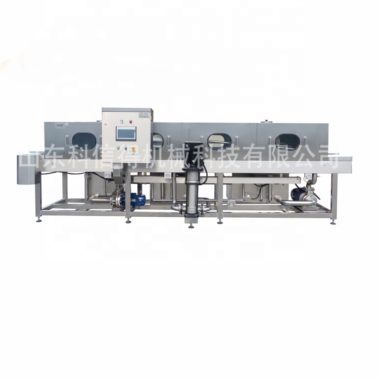 山东科信得洗筐机,周转筐清洗机是针对各种周转筐设计的清洗,除油,消毒和综合清洗设备,该设备操作简便,性能平稳。它是食品加工企业不可或缺的完美清洁设备。我公司生产的篮式洗衣机通过不锈钢链条将旋转篮取下并清洗后,依次经过碱性水→高压热水→一般而言。调温自来水→消毒水→等,以清洗篮筐并同时完成消毒和风干;清洁专用篮时,可在热碱水清洁段后加刷子以擦洗篮的底部和左右两侧,以提高清洁功效。采用连续清洗提高清洗效率。主体采用SUS304不锈钢板制成,保健清洁。喷嘴采用食品级耐高温塑料喷嘴或不锈钢喷嘴。清洁出发点可调。上,下,左,右采用不同的型号,以免产生死角并确保清洁。马达速度可通过机械无级或变频开展调节。适用于清洁度不同的篮子。两侧的护栏导轨均可左右调节。适用于清洗不同大小的篮子。顶部喷管可上下调节,适用于清洗不同高度的篮子。碱性水和热水箱可以通过蒸汽加热或电加热加热,自动控温。